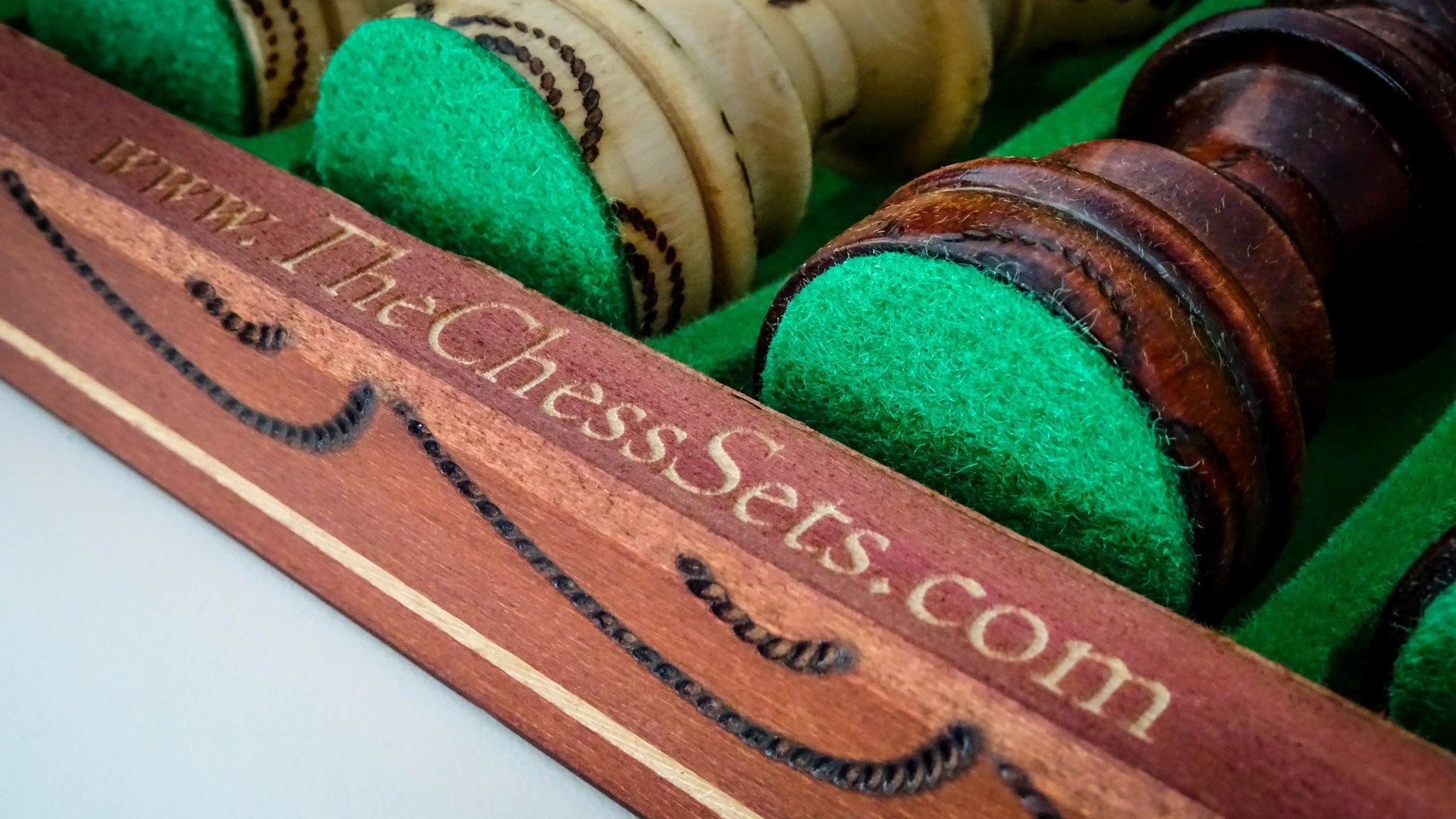 Sur demande, nous proposons un service de gravure sur la paroi intérieure de l'étui ou du jeu d'échecs. Si vous choisissez un champ d'échecs, veuillez préciser sur quel champ vous souhaitez que la gravure soit effectuée (la gravure sur les champs A1 ou H8 est la meilleure).   .
