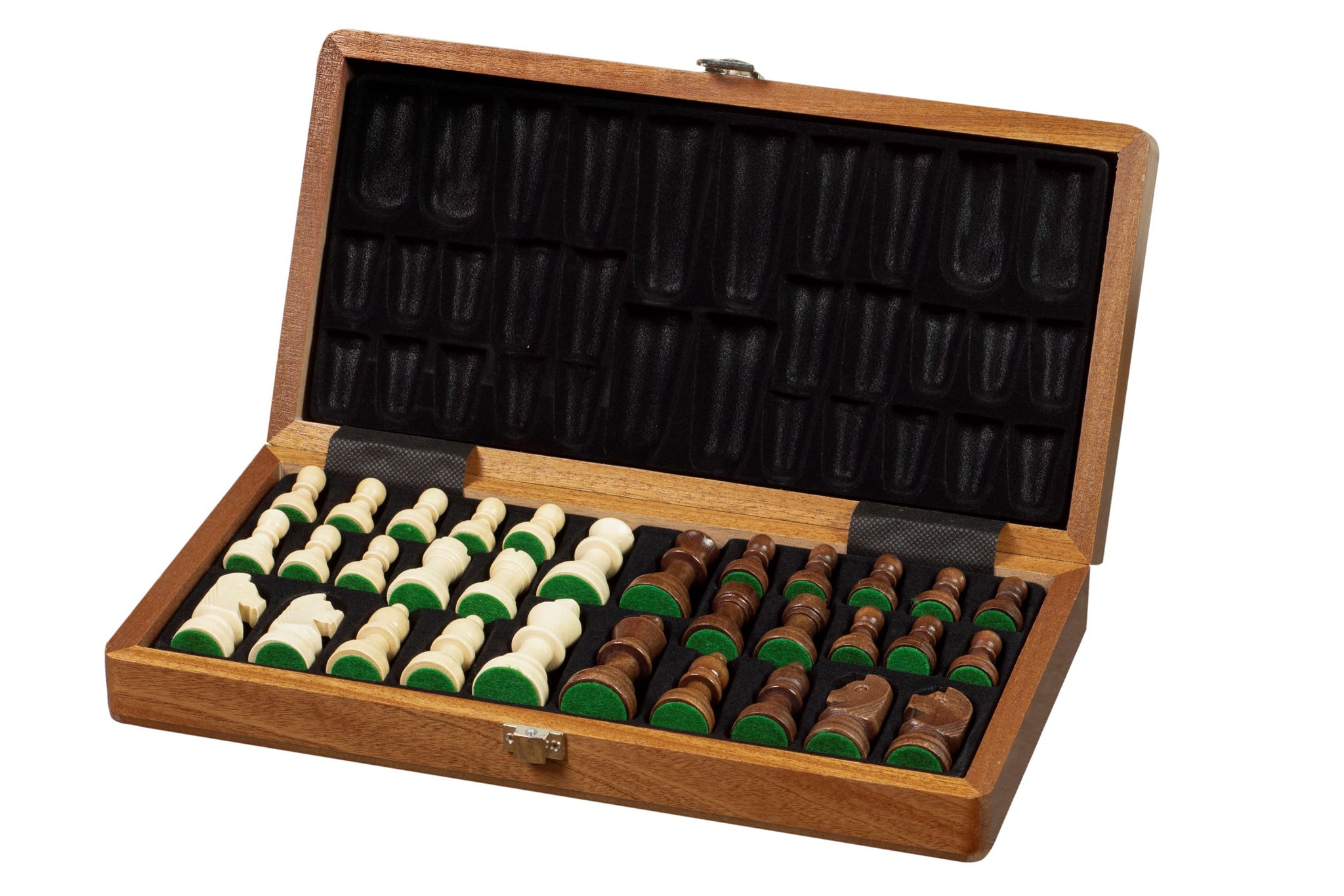 Un jeu d'échecs de tournoi de haute qualité, composé d'un échiquier en acajou et en érable incrusté et de pions Staunton n° 3 en bois.